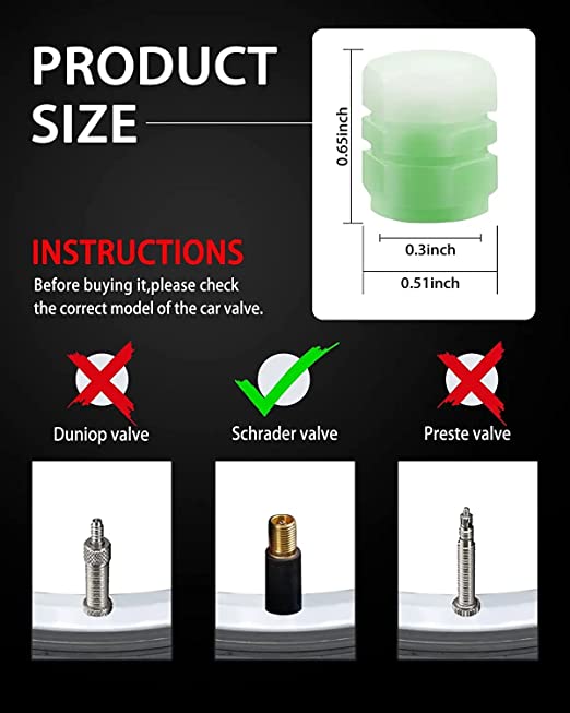 - Easy Installation: Easy installation without tools. Simply screw it onto the tire valve stem. It's easy to install or remove when you want to check air pressure.